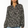 The is made from a blend of materials including cupro, making it super soft and delightful to touch. This shirt features long raglan sleeves, a mandarin collar, and shirring detail.