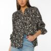 The is made from a blend of materials including cupro, making it super soft and delightful to touch. This shirt features long raglan sleeves, a mandarin collar, and shirring detail.