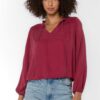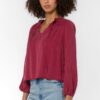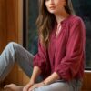This pop-over blouse features long sleeves with an elastic cuff and a smocked yoke. The smocked yoke provides a comfortable and flattering fit, while the elastic cuff ensures that your sleeves will stay in place.