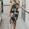 ?Washed charcoal base with floral print, side pockets and slits
