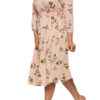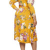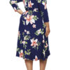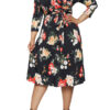 V neck, wrap design, 3/4 sleeve, floral pattern, plus size midi dress for women