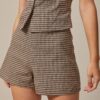 The are versatile piece that combines feminine style with modern comfort. The zipper fly and plaid design adds a touch of elegance and pairs well with a variety of tops. The high waisted design creates a classic silhouette with a modern twist, perfect for any occasion. Whether dressed up with heels or dressed down with sneakers, the shorts are must-have addition to any wardrobe.