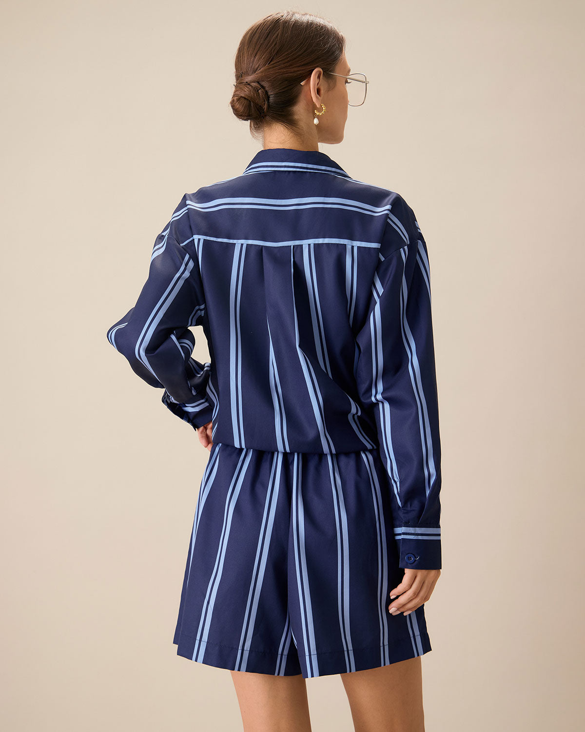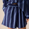 Crafted from lightweight, breathable fabric, they feature a classic navy and white striped pattern that’s perfect for warm weather. The elastic waistband ensures a snug, comfortable fit, while the relaxed silhouette provides ease of movement.